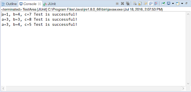 System.out.println("a=3, b=4, c=5 Test is successful!");